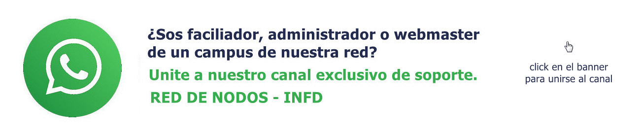 Si sos webmaster o docente administrador del campus virtual de alguno de los nodos del Instituto Nacional de Formación Docente (INFoD), tenemos una novedad para vos: creamos un canal oficial de WhatsApp exclusivo para la Red de Nodos.